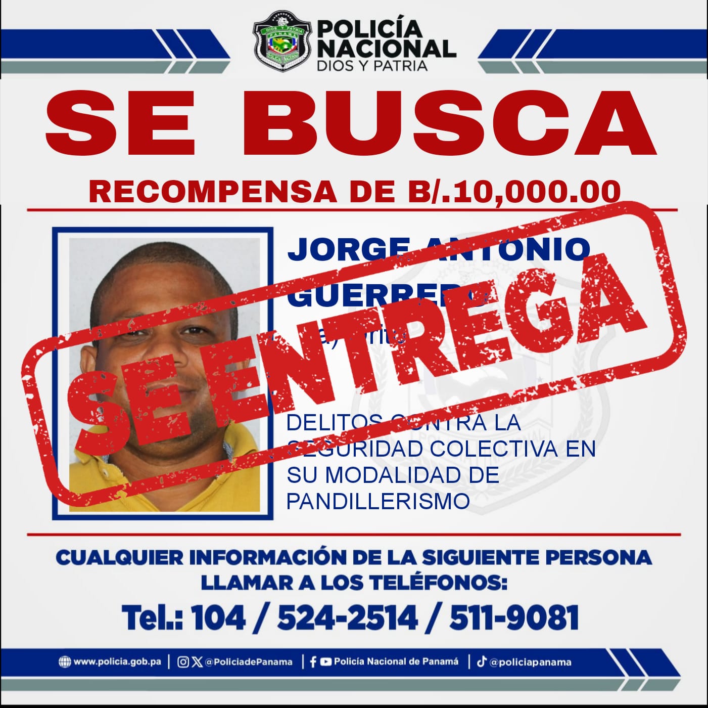 Jorge Antonio Guerrero Alias “Orito”, miembro de la pandilla autodenominada El Pentágono y quien figura entre los 33 más buscados con recompensa por delitos de pandillerismo, se entregó esta tarde ante las autoridades del Ministerio Público.