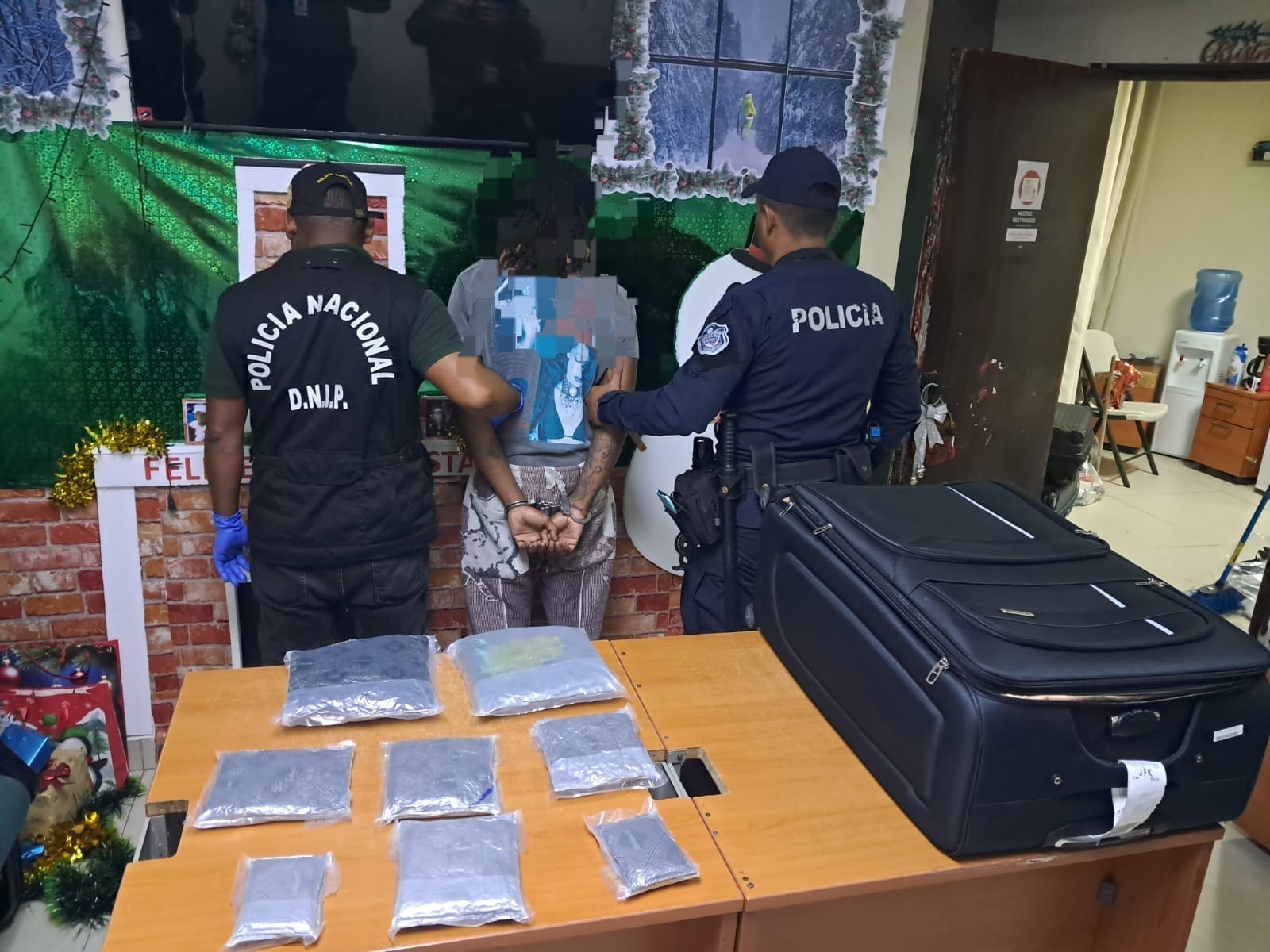 La Policía Nacional realizó acciones operativas en el Aeropuerto Internacional de Tocumen, donde perfiló a una viajera de 23 años de nacionalidad japonesa que, al ser verificada entre sus pertenencias, las unidades detectaron una maleta con doble fondo que, en su interior, se encontraron dos planchas con presuntas sustancias ilícitas.