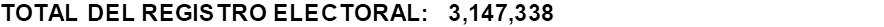 Las estadísticas revelan que el Registro Electoral es de 3,147,338, mientras que el 49.55% los ciudadanos están inscritos en partidos políticos y el 50.45% no están inscritos en colectivos políticos.