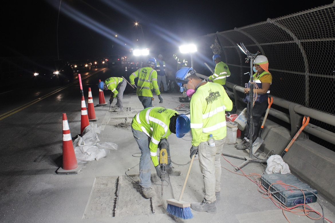 Como parte del proyecto “Mantenimiento y Evaluación del Puente de las Américas”, el Ministerio de Obras Públicas (MOP) desarrolla trabajos nocturnos de rehabilitación en la capa de rodadura de esta emblemática estructura, con el propósito de garantizar una circulación más segura y confortable para los más de 40 mil conductores que transitan diariamente por esta vía.
