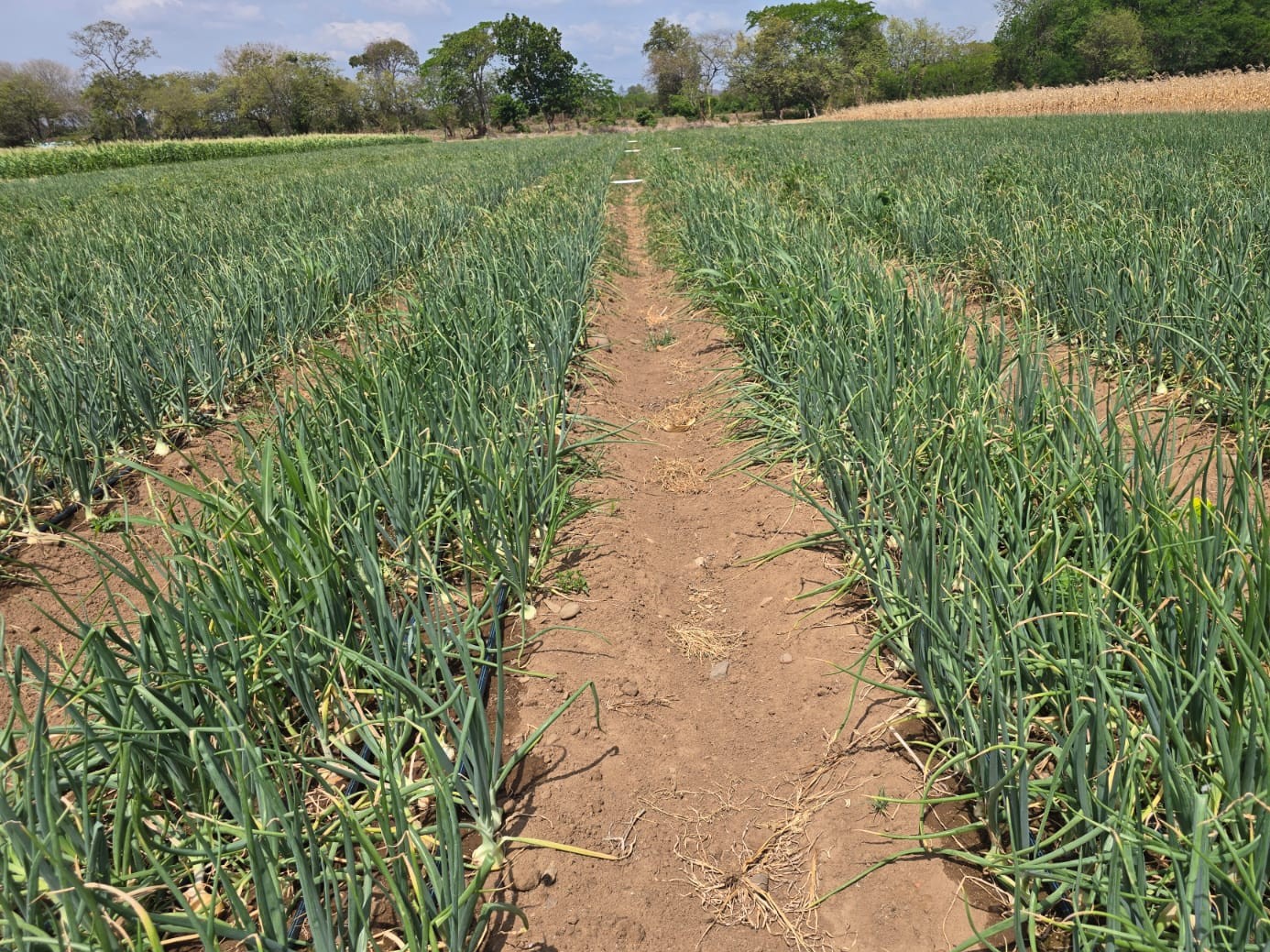 Como parte de la actividad, se llevó a cabo una visita a las parcelas del rubro, observando que el cultivo está en la etapa de llenado de bulbo, con un tiempo posterior de trasplante de 70 días, mostrando un óptimo desarrollo de las mismas.