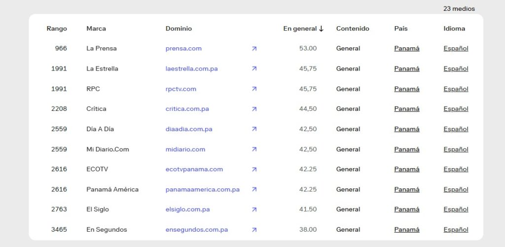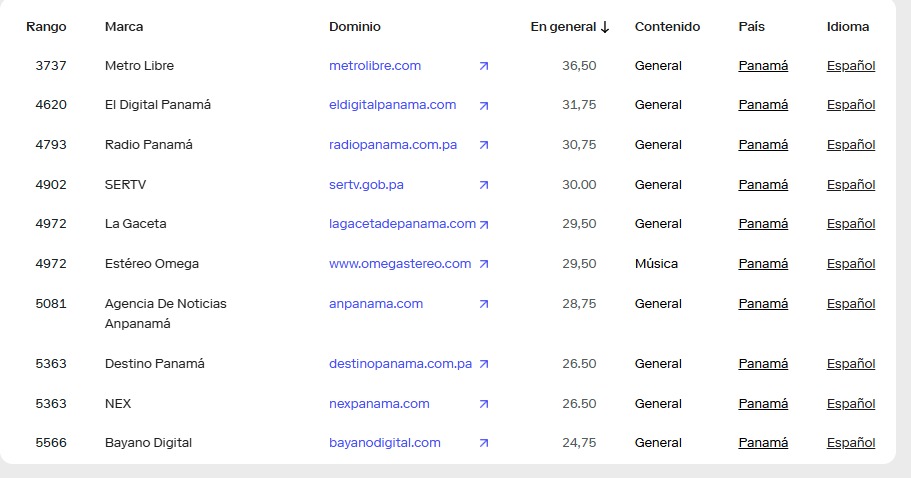 El Digital Panamá recibió la clasificación de 31.75 en el ranking de reputación digital de medios elaborado por SCImago Media Rankings para el invierno de 2025.