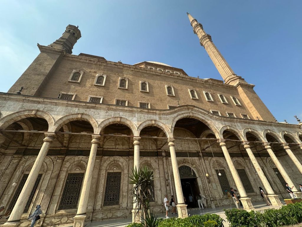 El primer día visite la ciudadela de Saladino, llamada así en honor a este sultán que gobernó Egipto y que lideró batallas contra los ejércitos de las cruzadas cristianas a quienes derrotó. La ciudad fortificada fue la sede de los gobernantes egipcios y sus murallas los protegieron de los invasores europeos. Entre sus edificaciones destaca la famosa mezquita de Mohamed Alí, un impresionante templo que se distingue por estar cubierta en su exterior por alabastro lo que resalta el brillo de su estructura. Alberga en su interior una hermosa decoración con azulejos y grandes lámparas, construida por el gobernador otomano Mohamed Alí quien gestionó importantes cambios en la ciudadela y a quien se le considera uno de los artífices de la transformación de Egipto a la modernidad.