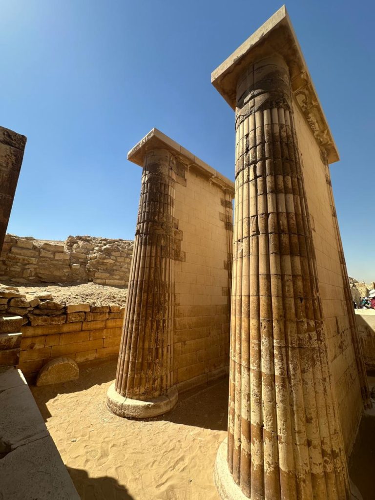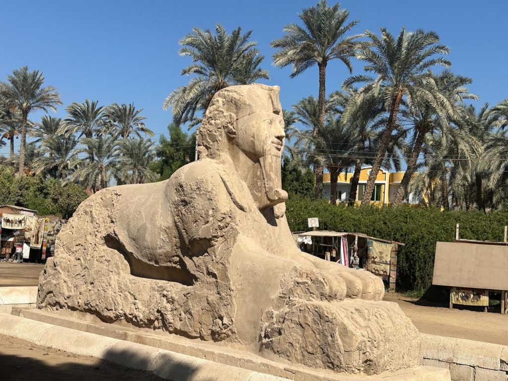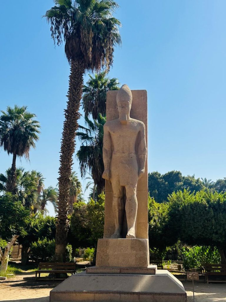 La ciudad de Menfis fue la capital del antiguo imperio egipcio, allí visité un museo al aire libre donde destaca una monumental estatua del faraón Ramsés II que mide catorce metros de altura. Muy cerca de allí se encuentra Sakkara que era la necrópolis de los faraones, allí entre a una de las recamaras donde hay que hacerlo inclinado, es un recorrido interesante a prueba de claustrofóbicos. Se aprecia también una pirámide escalonada la que se considera la primera pirámide de Egipto. Llamaron mi atención algunas paredes decoradas con escenas de la vida cotidiana del antiguo Egipto. Tuve la oportunidad de conocer una fábrica de papiros donde la anfitriona me mostro como se fabrican y posteriormente fuimos a una fábrica de alfombras para apreciar el meticuloso trabajo que hacen las mujeres egipcias con la lana y la seda a la hora de la confección de estos apreciados y vistosos tejidos.
