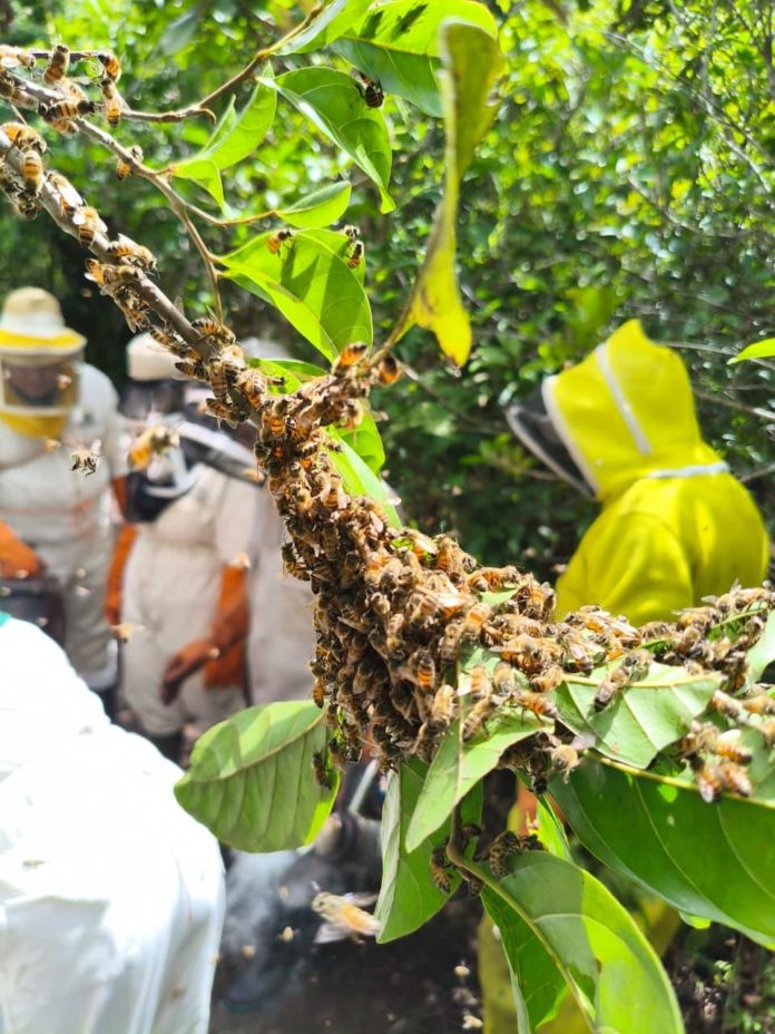 En estos casos, se debe comunicar de inmediato con las entidades correspondientes: cuerpo de bomberos, Mi Ambiente, MIDA; instituciones que cuentan con un personal capacitado, incluso existe un equipo humano que realiza la captura y reubicación segura de los enjambres silvestres.