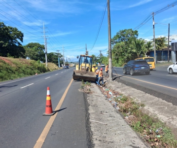 La Dirección Regional del Ministerio de Obras Públicas (MOP) de la provincia de Colón, continúa con los trabajos de limpieza en la vía Transístmica, específicamente en el tramo comprendido desde Puerto Escondido, en el corregimiento de Cristóbal, hasta el sector residencial conocido como La Feria, en Cristóbal Este.