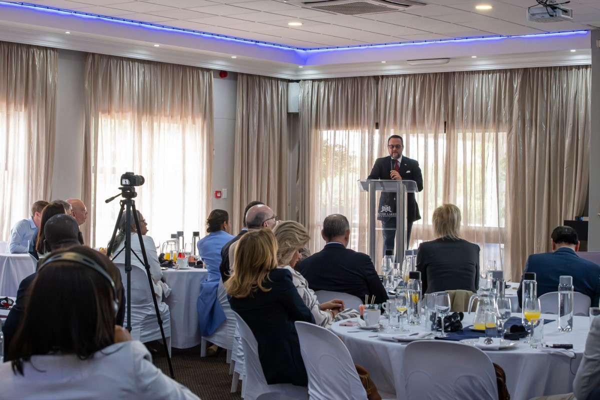 En el marco del Panamá Week en Sudáfrica, el ministro de Comercio e Industrias, Julio Moltó, participó junto a la delegación panameña en un foro de negocios, donde presentó las ventajas competitivas de Panamá frente a empresarios y representantes gubernamentales de Sudáfrica, Angola y otros países asistentes.