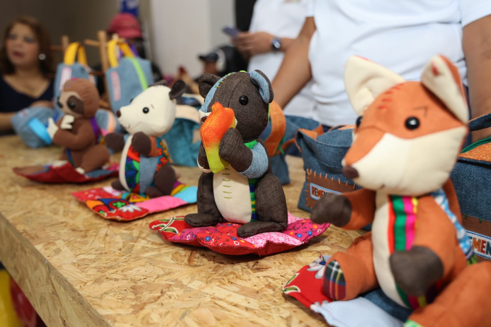Padres de familia acompañados de sus hijos, jóvenes y adultos se detenían en el stand de los Remenditos para comprar bolsas, mochilas, loncheras, cartucheras y los tiernos y hermosos peluches Remenditos.