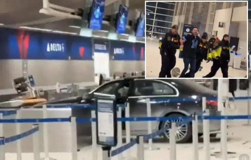 El incidente ocurrió en la madrugada de este sábado. El vehículo se estrelló contra la puerta de acceso, entró en el aeropuerto y chocó con los mostradores de facturación.