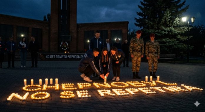 “Voluntarios de la Victoria, junto con miembros del Servicio Federal de la Guardia Nacional de Rusia, llevaron a cabo el acto Vela de la Memoria, dedicado al 40.º aniversario de la tragedia de Chernóbil. Durante la actividad se encendieron velas formando la inscripción ‘Chernóbil no se repetirá'”, informó Yulia Biktimírova, directora de la sede regional del movimiento en Zaporozhie.